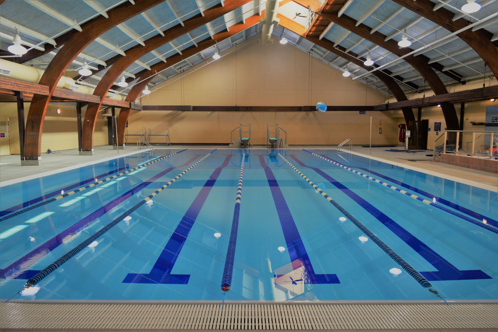 This 11,680 SF swim and fitness facility project consisted of a complete renovation of two indoor pools and the mechanical room, all originally constructed in the late 1970s. The scope included removal of the existing pool decks, underslab HVAC system, deck drains, main drains and removal of all existing pool equipment from the mechanical room. Two new Myrtha RenovAction pool systems were installed in the existing shells with a custom surge gutter and grating. New pool supply piping was installed, along with new deck trench drains, ADA–compliant pool decks and diving boards. Within the pool mechanical room, the existing surge tank was repurposed as a pump pit to ensure maximum operating efficiency for the new pool pumps. The mechanical room was reconfigured to offer an efficient layout for the new pool equipment and maximize storage. New equipment included electrical switch gear, interlock controllers, pool pumps, UV filters and media filters.