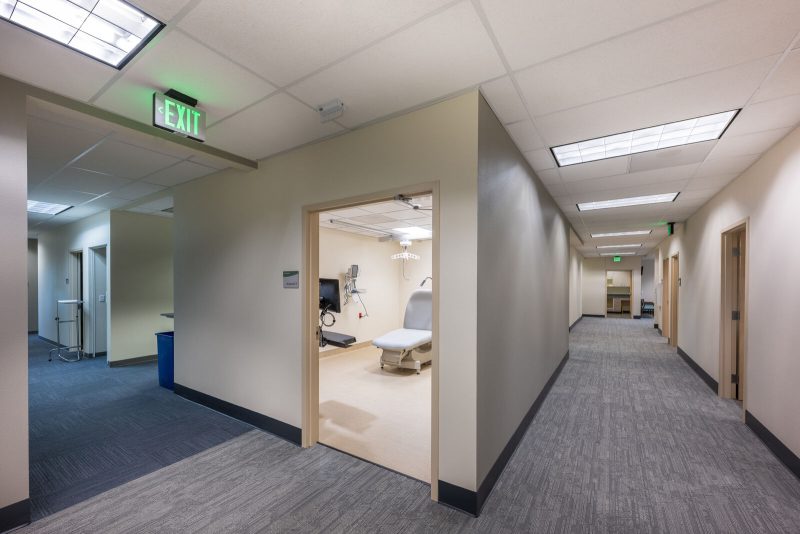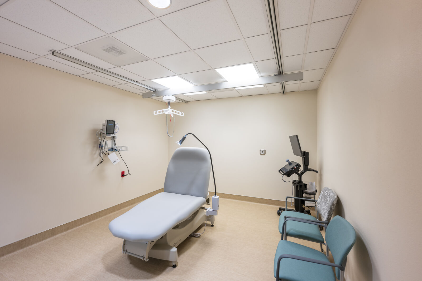 This 5,000-square-foot renovation consolidated three separate clinics into a single, efficient facility to enhance operational flow and patient care. The project entailed reconfiguring the floor plan to incorporate an ultrasound room, consultation room, conference room, shared offices and expanded storage. A key upgrade was the conversion of two rooms into one patient-of-size exam and procedure space with a 700-pound-capacity lift, along with an expanded restroom for improved accessibility.